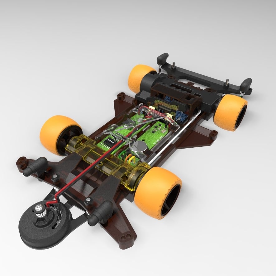 The problem when changing the chassis of a mini4WD to slotcar racer, is settled.