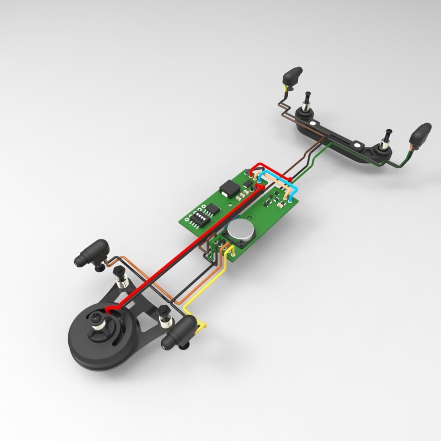 ミニ四駆のシャーシをスロットカー化するためのキット。